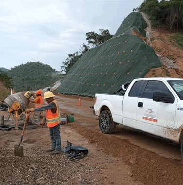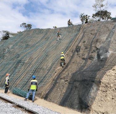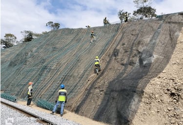 Estabilización de taludes con anclas de tensión, geomanta
